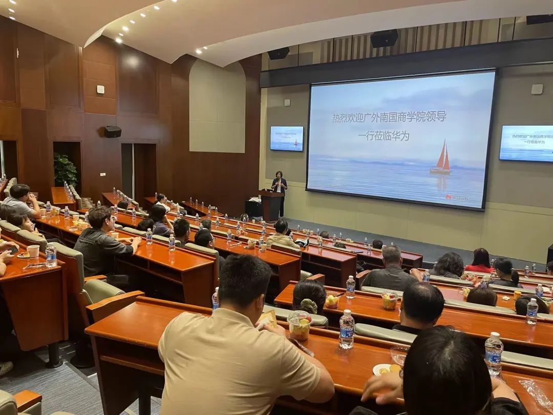 本网讯 4月19日,新媒体与国际传播学院组织我校部分教师赴华为松山湖园区参观学习,学习了解华为的发展历史、发展理念,在实地探访和交流中感受华为的企业文化和管理之道。我校校长焦方太,督学顾也力,党委书记、副校长许志超,广东外语外贸大学原副校长陈林汉,新媒学院院长李淑芳教授出席活动。