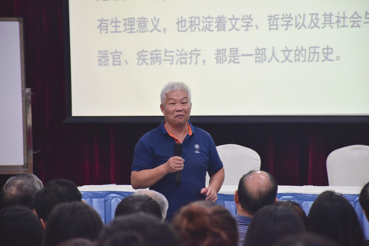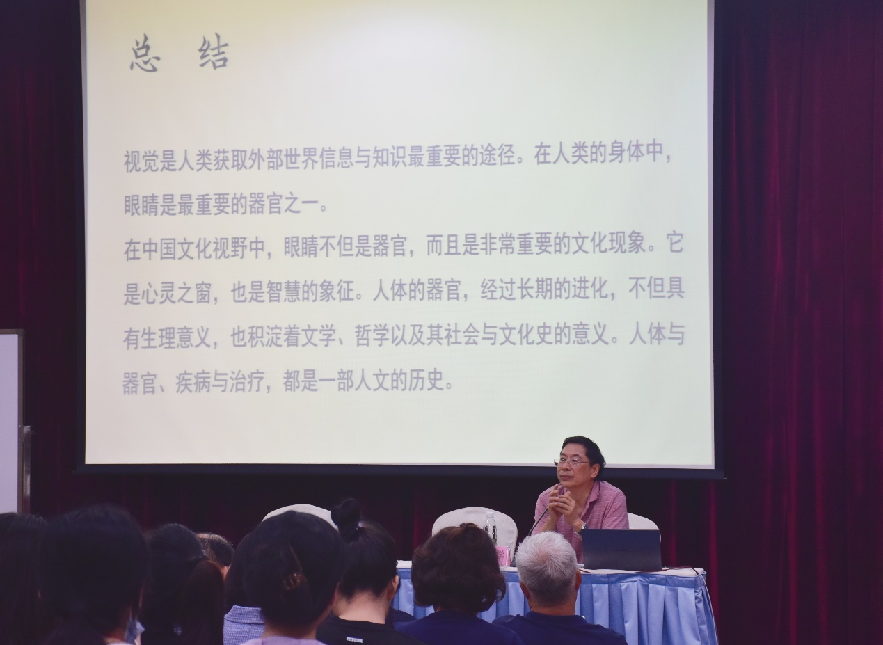 接着,吴承学教授谈到,眼睛所引申的意义非常多,他在生理现象与哲学、文化等多个层面,为与会听众深入解析了眼睛这个器官的特殊之处。吴教授先用“盲于目而不盲于心”为例引出眼睛不仅是一个器官、而且具有哲学意义的观点。紧接着,吴教授引导听众穿越到古代文化中,从《山海经》中经常出现的“一目国”到古代圣贤的特殊眼睛,吴教授从不同方面向大家揭示了眼睛在古代文化中被赋予的重要象征意义。
