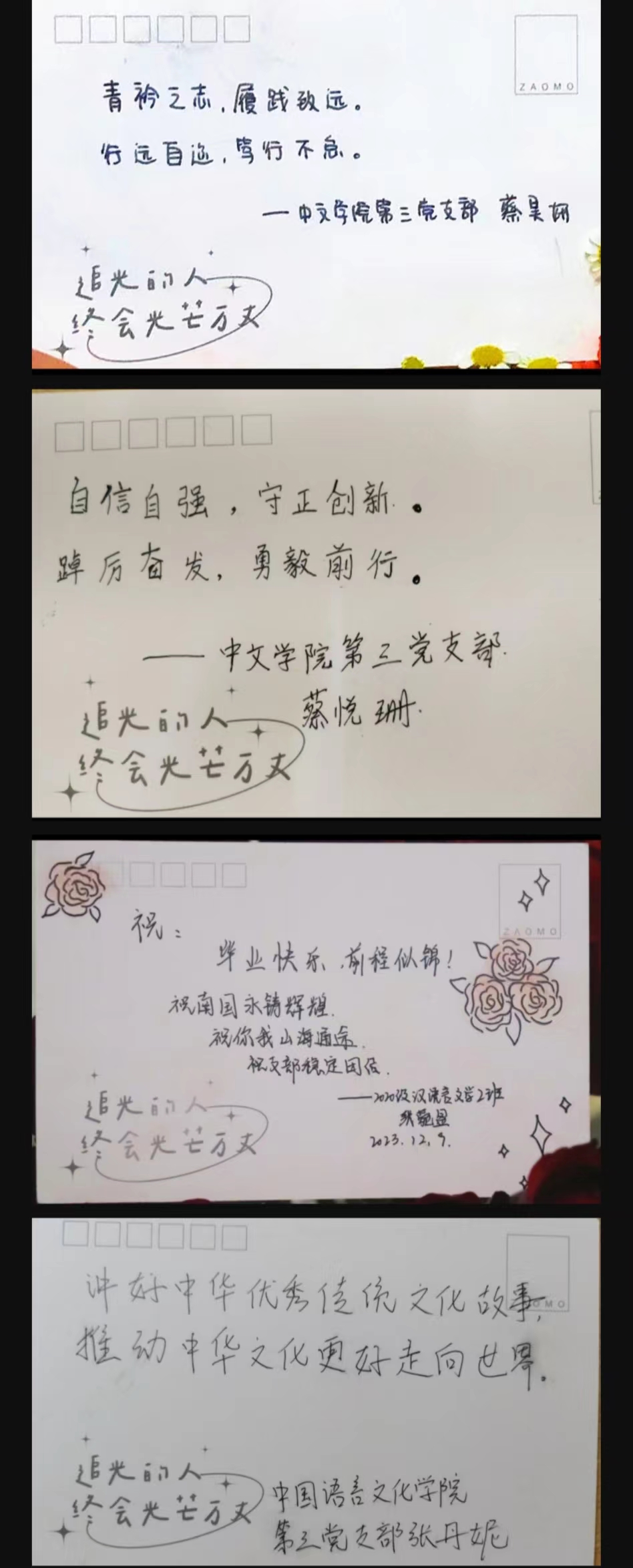 第三党支部部分毕业生党员在明信片中写下的心得。