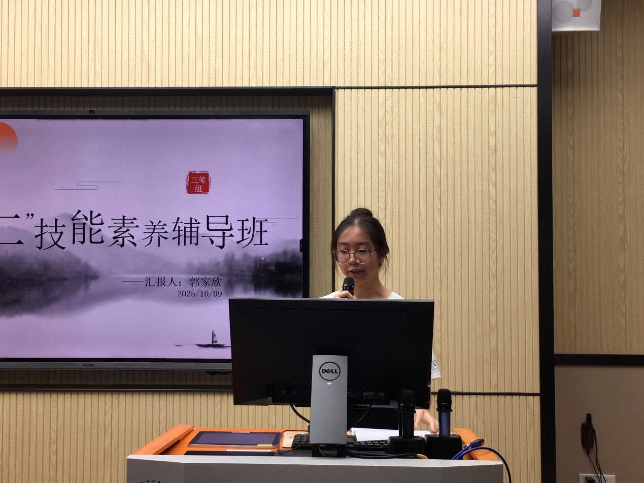 (三笔书法组指导员郭家欣介绍辅导内容和安排)