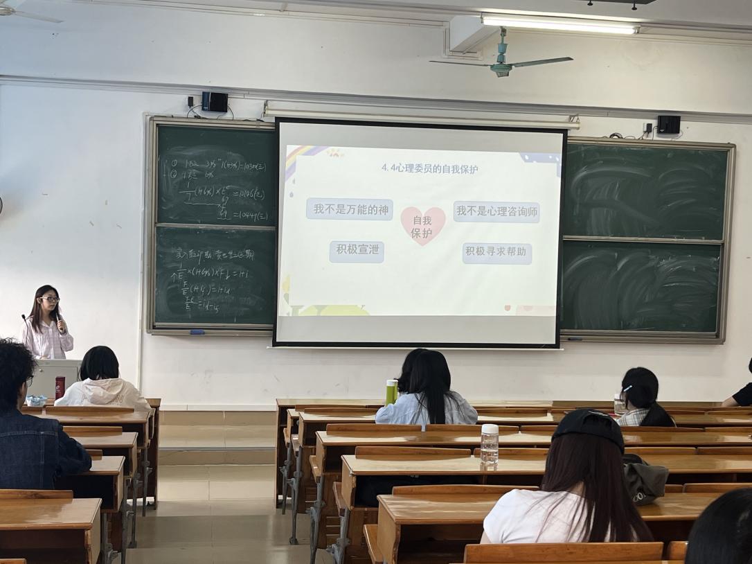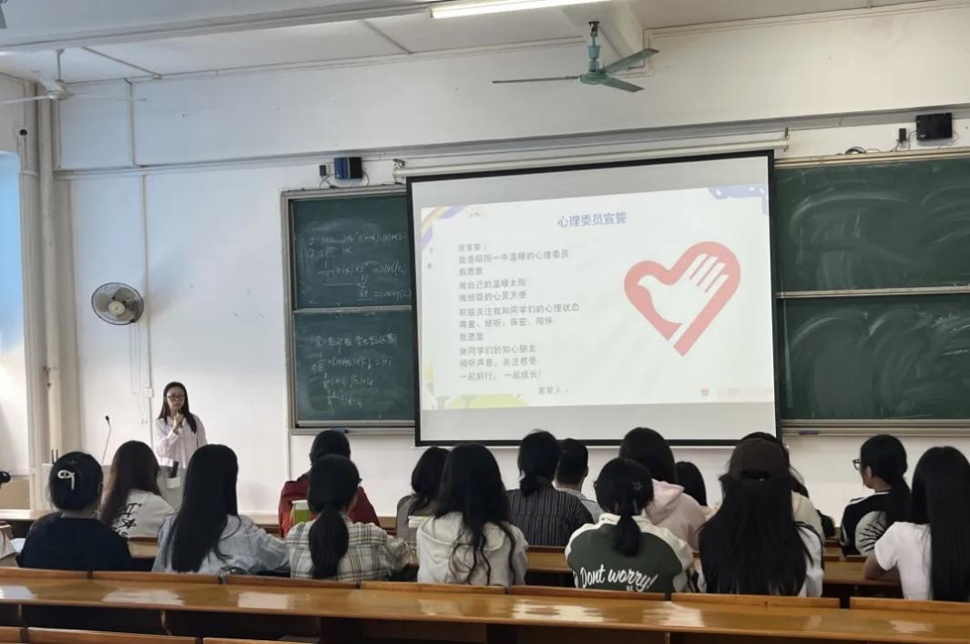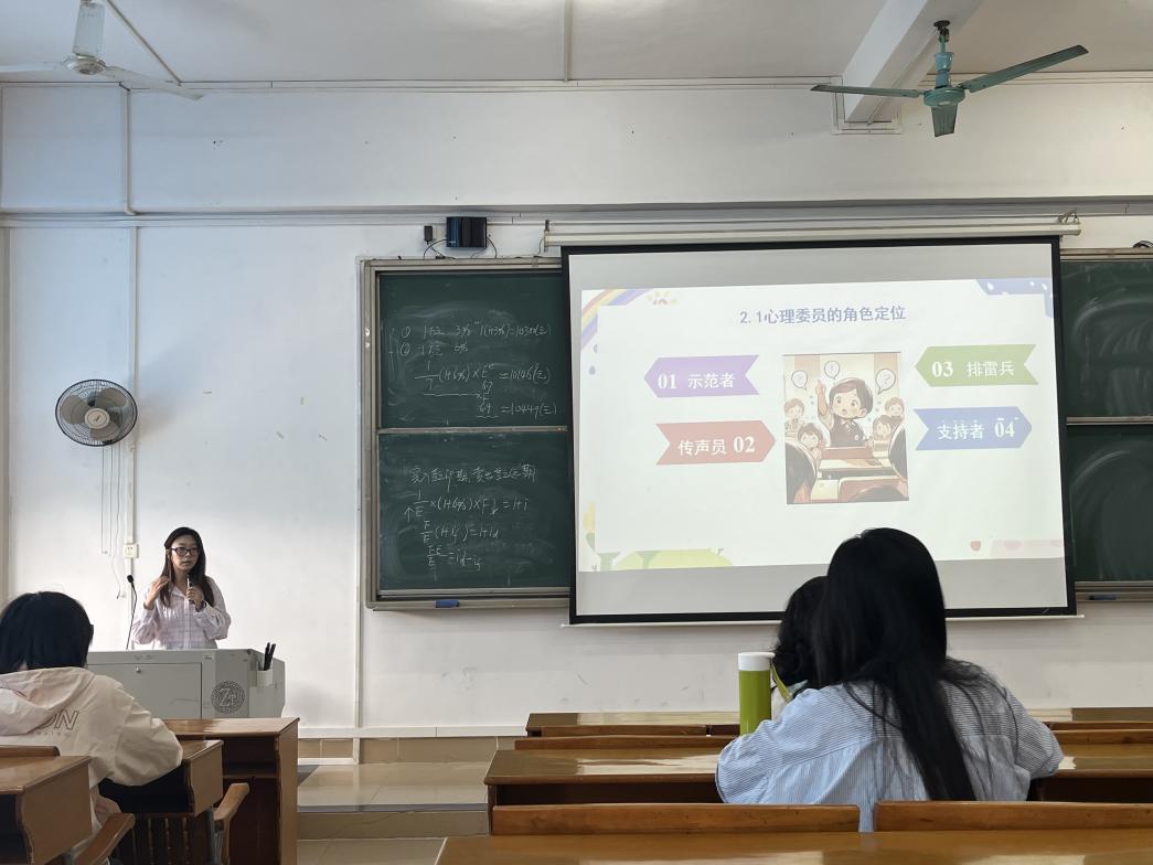 结合当前大学生普遍面临的学业、人际、家庭及睡眠等多重压力,乔老师分析了心理健康工作面临的现实挑战与重要意义。她形象地比喻道:“每一位心理委员,都是一盏可以点亮心灵的灯。”她鼓励大家努力成为班级里那个温暖、可靠的存在,用真诚的理解与耐心的陪伴为同学们传递力量。