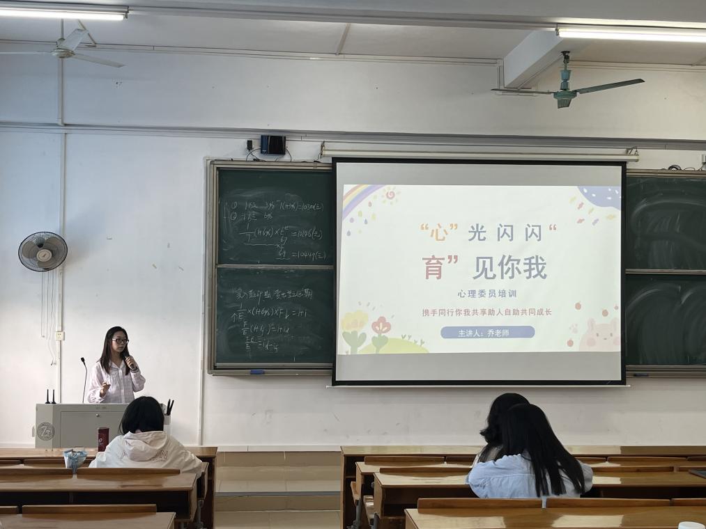 (本网讯) 为进一步夯实心理健康教育工作基础,提升心理委员的专业素养与服务能力,2025年10月29日中午,文学与传播学院二级心理辅导站“阳光小筑”于C402教室成功举办了以“‘心’光闪闪,‘育’见你我”为主题的心理委员专题培训会。本次培训由乔旖旭老师担任主讲,与全体心理委员共同开启了一场温暖而有力量的心灵对话。