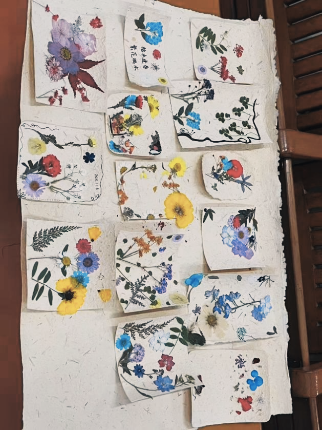 活动尾声,全体参与者来到前排为干花拼贴作品合影。一幅幅独具匠心的画作拼合成“片花映情”的集体创作,宛如一场绚烂而宁静的视觉盛宴。活动结束后,同学们纷纷表示,在手工中缓解了压力,在自然材质里寻回了内心的宁静。
