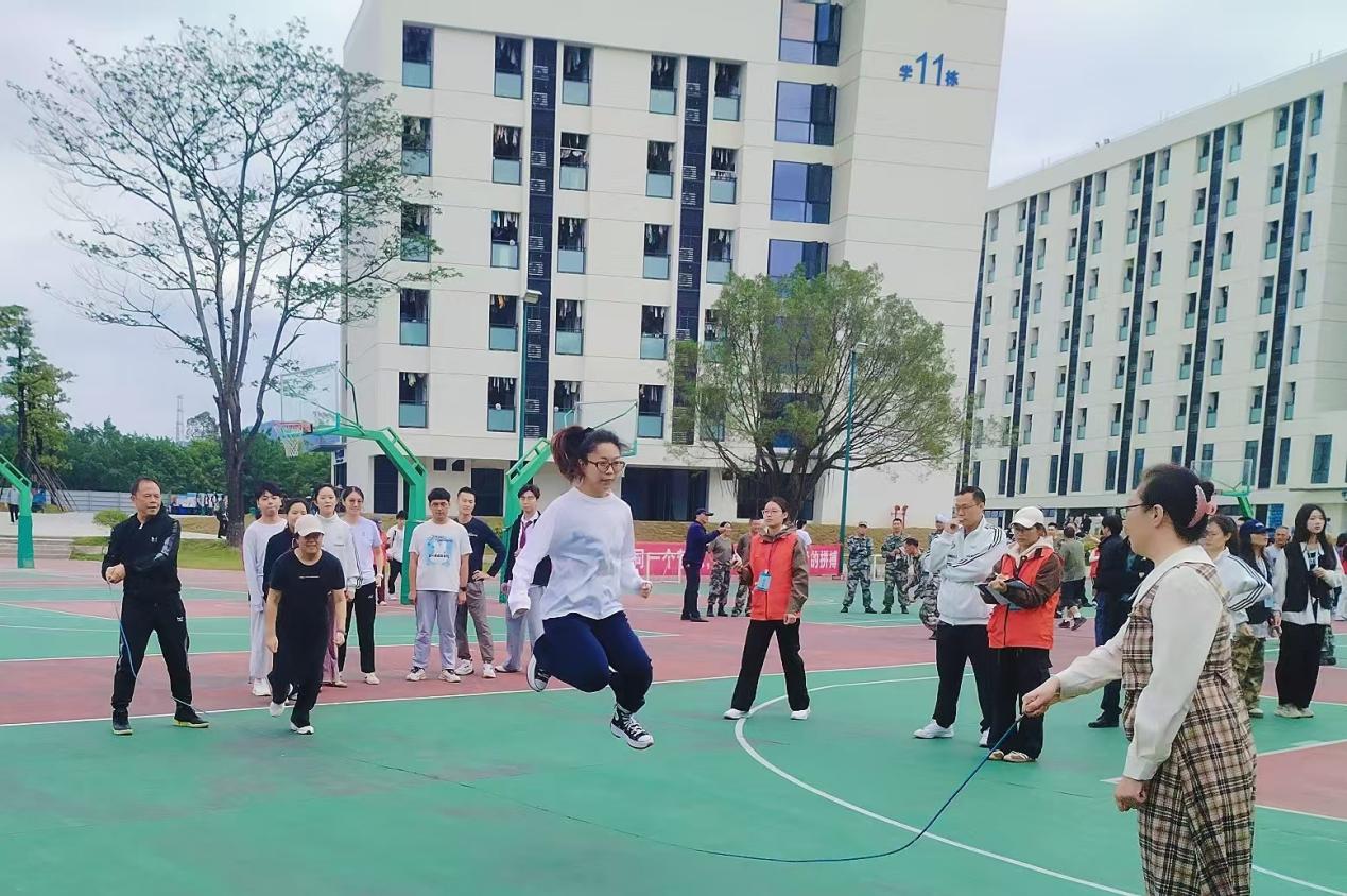 (教师积极参与趣味跳绳活动 温若瑶/摄)
