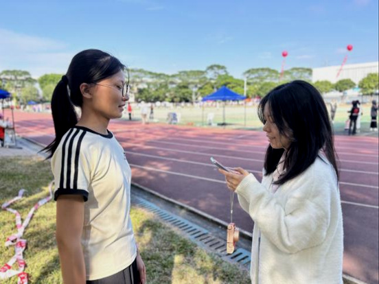 随着裁判一声哨响,比赛正式开始。第一位上场的盘筱瑜同学脚步轻盈,节奏分明,绳影在阳光下划出优美弧线,赢得阵阵掌声。另一位选手庄丽霞则以沉稳的节奏和扎实的基本功赢得评委赞赏。她表示:“能把每一次跳都做到最好,就是最大的满足。”