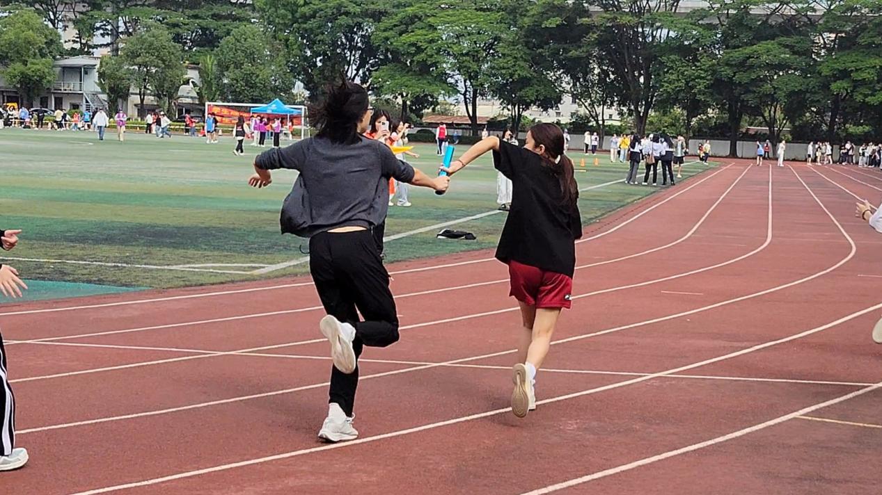 发令枪响,第一棒何鑫涓以稳健的起跑率先冲出,快速拉开差距;第二棒钟欣琪接棒流畅、步伐轻盈,眼神中闪烁着坚定的光芒;第三棒邓雅琪全力提速,与对手展开激烈角逐;最后一棒麦晓琳在加油声中奋力冲刺,最终与对手几乎同时抵达终点,为比赛画下圆满句号。