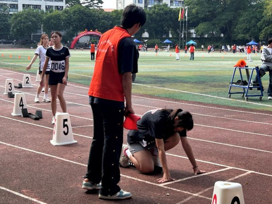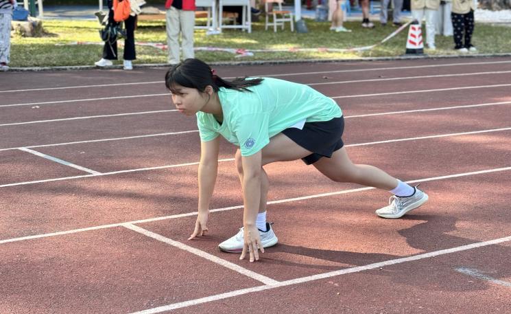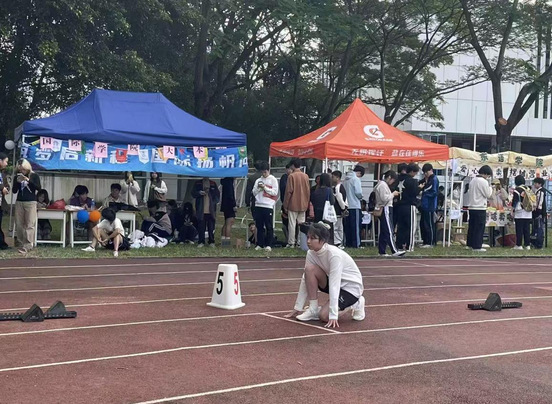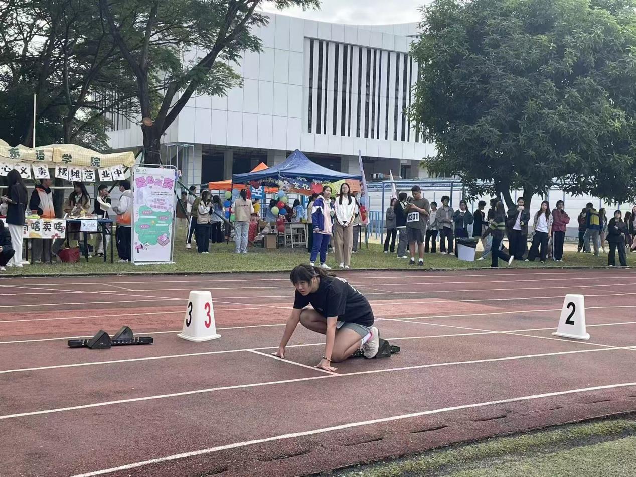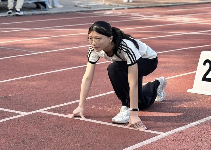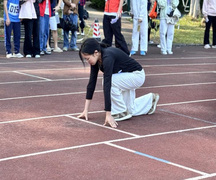 11 月 14 日上午,校运会女子 200 米决赛在运动场如期开赛。暖融阳光洒满赛道,几缕冷风相伴,却丝毫未减选手们的竞技热情。我院参赛选手邓雅琪同学提前到场热身,以饱满状态迎接赛事,蓄势待发。