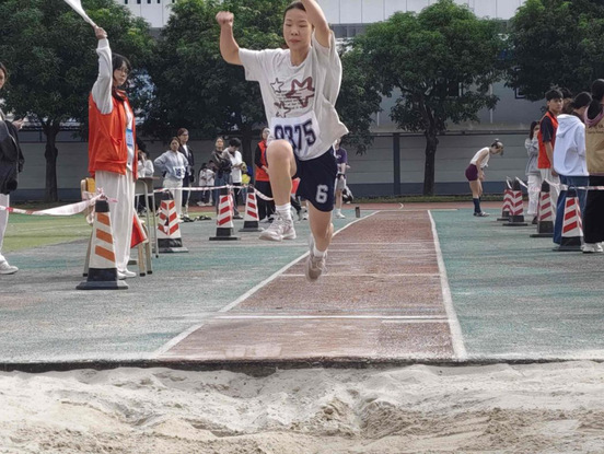 当发令旗挥下的那一刻,郑创钦同学迅速迈开步子,奋力朝着白线奔跑,犹如追捕猎物的狮子,在到达白线的那一刻用力往前跳跃,完成了前三轮的跳跃,可惜的是只获得了第六名的成绩,在采访时,他说,他并没有因为前三轮的落后而紧张,想要放弃,而是调整状态,时刻准备扳回局面。