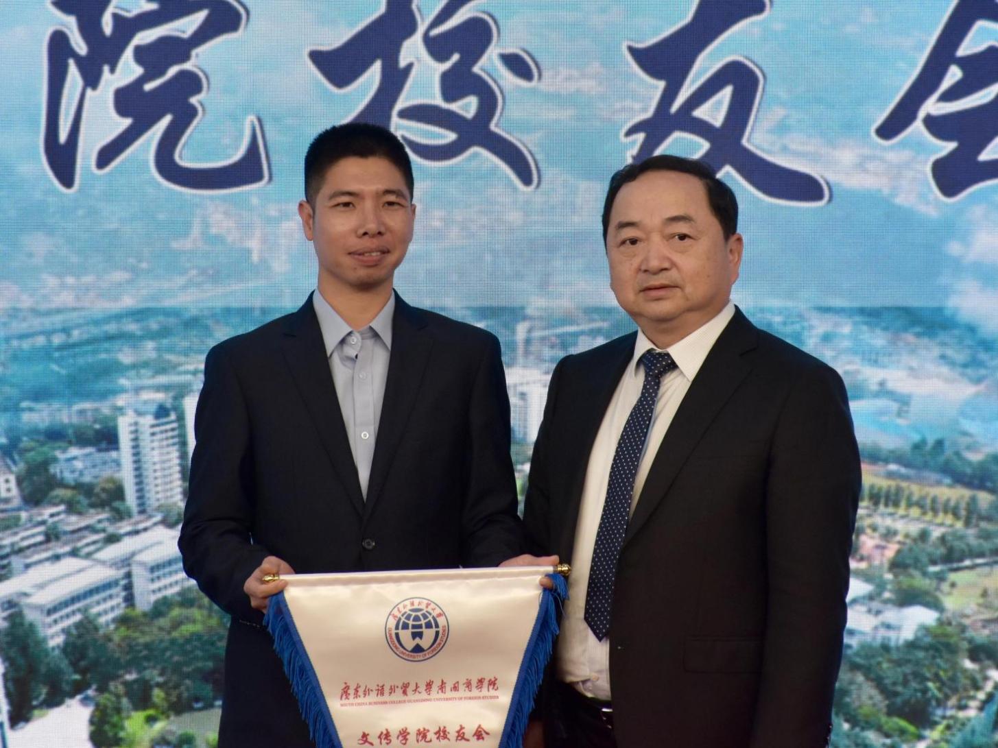 (校友总会会长丁小军先生向文传学院校友会会长授旗)