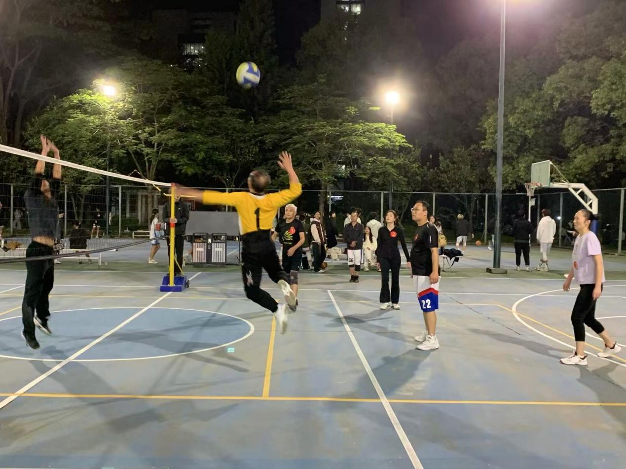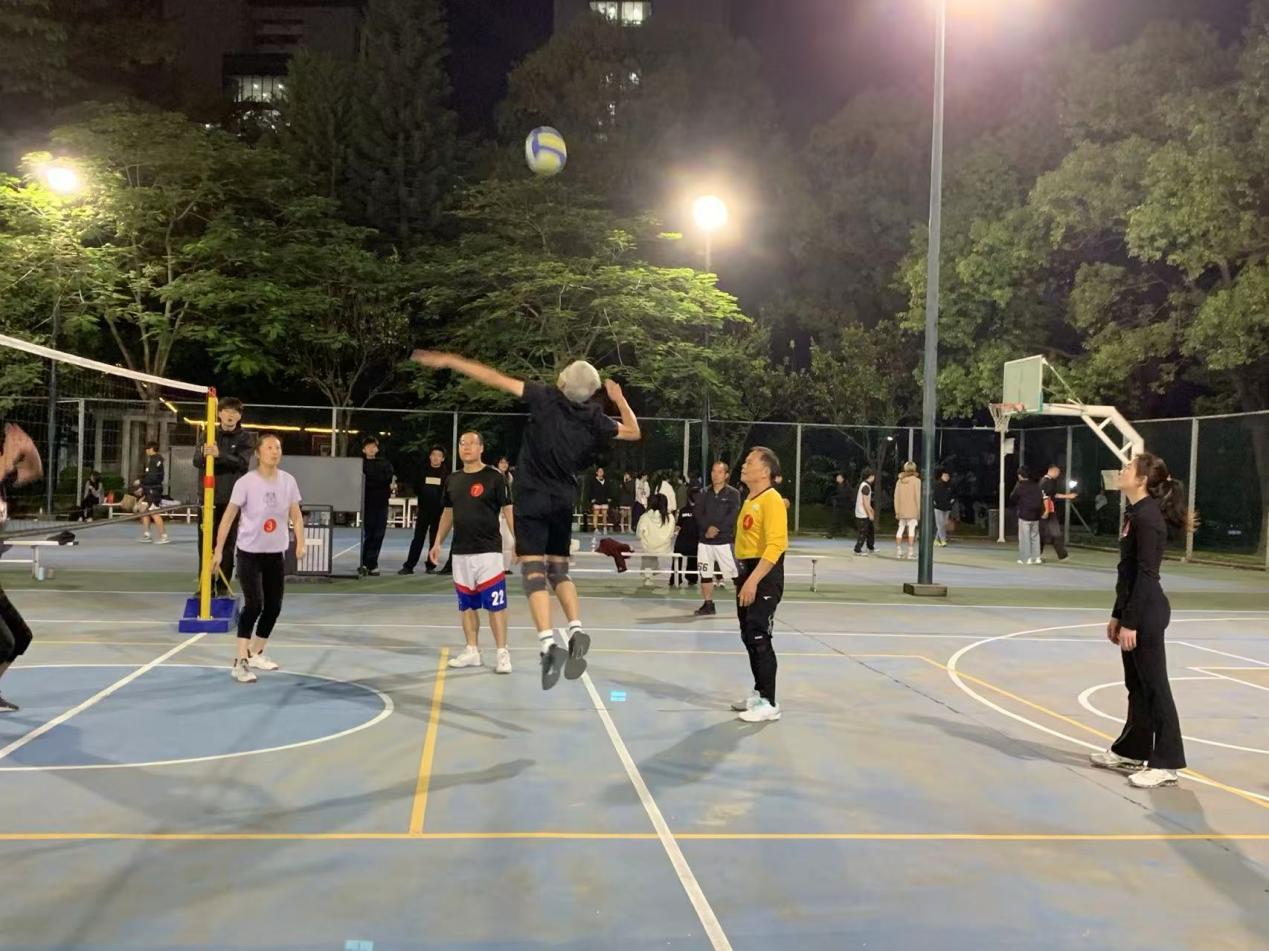 此次比赛不仅是球技的较量,更是一次促进部门间沟通、增强团队凝聚力以及展现教职工的良好精神风貌的生动实践。傍晚时分的灯光篮球场,因为气排球比赛而变得热闹非凡。它不仅为参赛队员带来了乐趣,也为观赛的师生提供了一场精彩的视觉盛宴,丰富了校园的文化生活。
