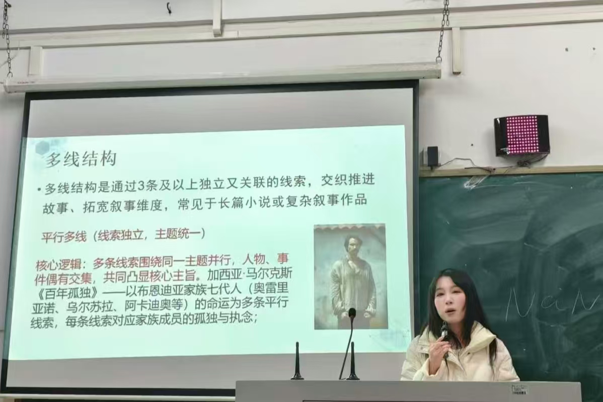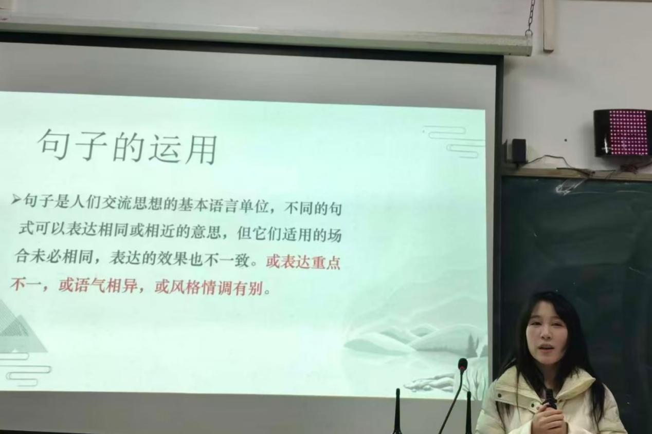 本网讯 11月18日晚,在教学楼A203,姜楠老师为同学们重点讲解了句子的运用及各种写作技巧。