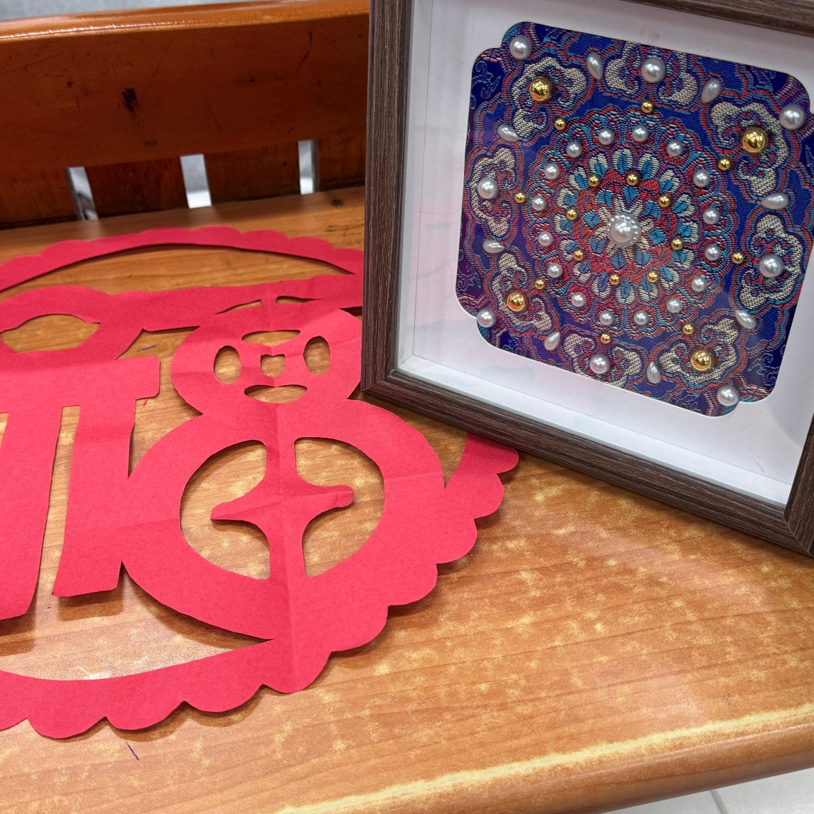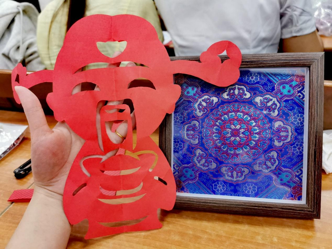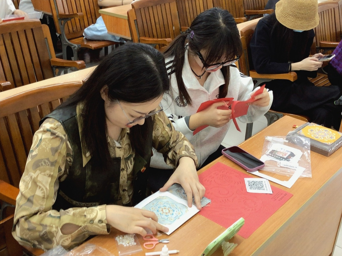 “寸锦织云,剪纸为月”手工实践环节将本次活动推向高潮。支部成员们借助发放的宋锦制作材料包与剪纸工具,亲手尝试制作简易的非遗手工作品。在专注的纹样编织与精心的剪刻镂空中,静态的文化知识转化为动态的创造,非物质文化遗产变得可触可感。亲身体验使文化自信不再是抽象概念,而是在亲手创造中孕育的深沉情感与内在力量。