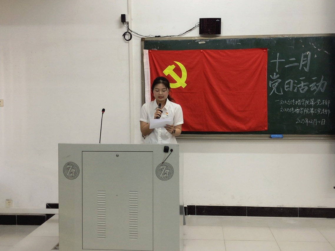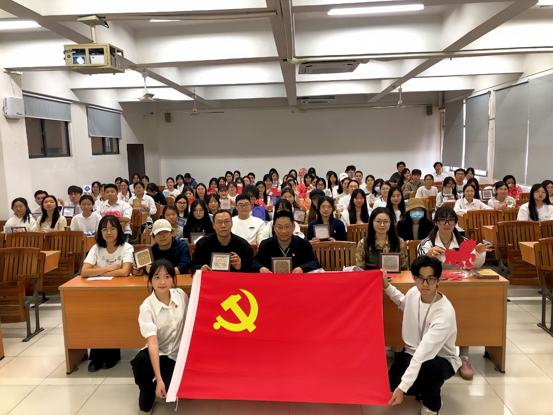 为深入学习贯彻党的二十届四中全会精神,推动中华优秀传统文化创造性转化与创新性发展,12月11日下午14:30,文化与传播学院第一党支部与第三党支部在F402联合开展了“千载非遗织锦色,一脉春风入党心”十二月主题党日活动。第一党支部书记梁施乐同志、副书记李明杰同志、第三党支部书记杨若颉同志出席活动。本次活动通过理论领学、心得分享、非遗体验等多个环节,将党性教育与文化传承深度融合,进行了一次深刻的思想淬炼与生动的文化实践。