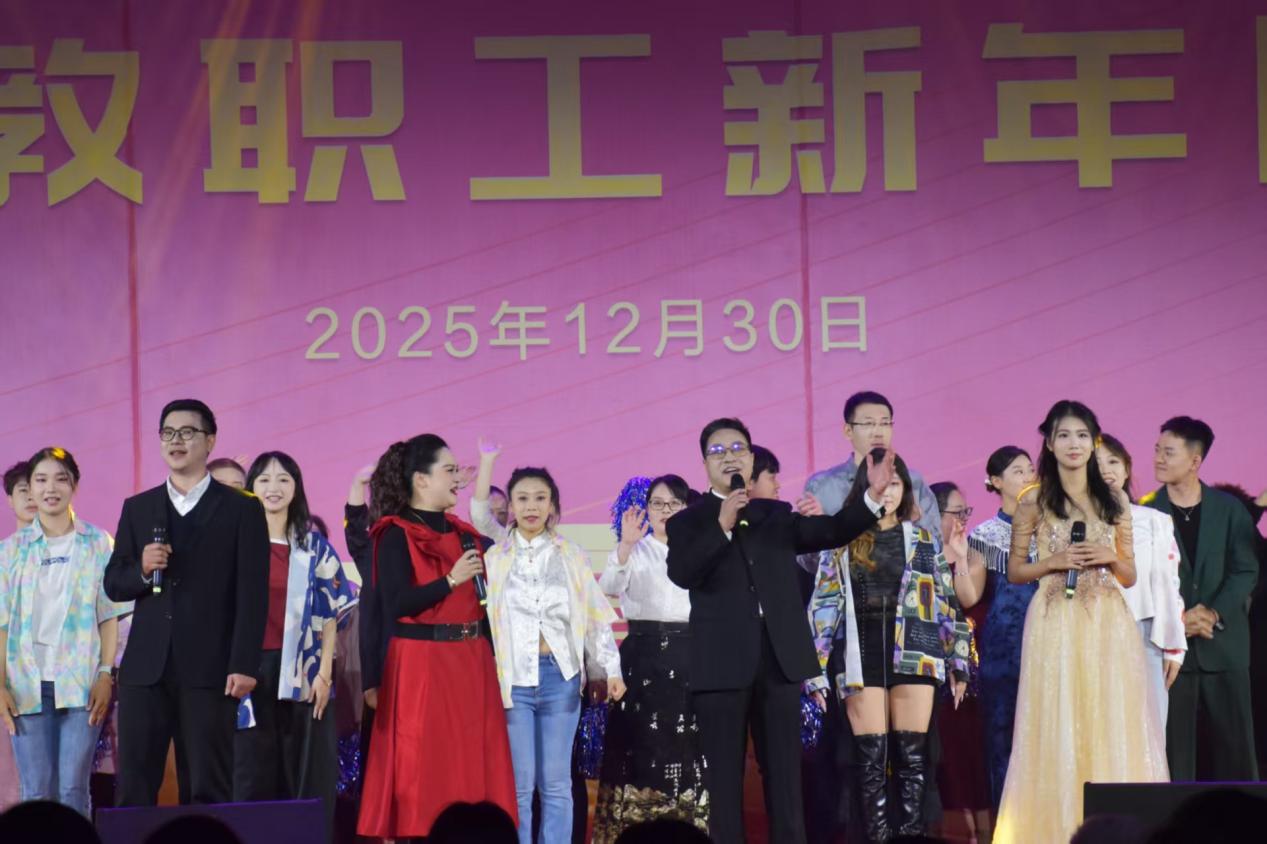 本网讯 辞旧岁豪情满怀,迎新年步履铿锵。12月30日晚上7点,校园内张灯结彩,暖意融融,2025年教职工新年晚会在学校体育馆内隆重举行。全校教职工欢聚一堂,共话桃李芬芳,共庆美好新年。