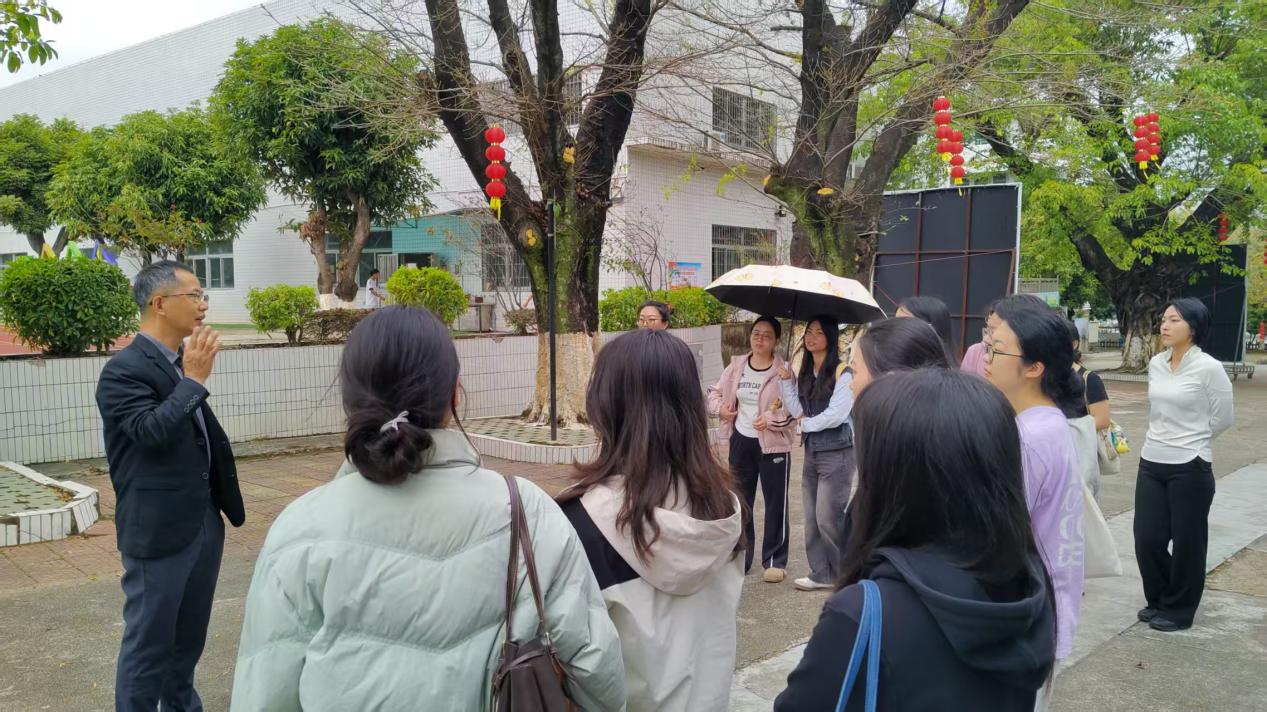 广州大同中学初中部作为广东省国家级示范性高中成员校,深耕“生态教育”特色办学,积淀了深厚的人文底蕴,配备了优质的教育教学资源。抵达当日,冯主任亲自带领学院师生参观校园,详细介绍了学校的办学历史、校园文化建设、特色课程设置及各类教学设施。江南园林式的校园景致、浓厚的育人氛围,让师生们留下了深刻印象。