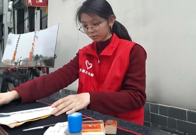 黄欣婷同志积极参与端砚文化宣传、游客引导及“新春集章纳福”等系列活动。服务期间,她协助市民与游客完成端砚文创书签、明信片集章打卡,引导群众体验拓福传统文化。她在服务实践中收获成长、锤炼自我,在无私奉献中坚定理想信念,以实际行动展现了新时代青年的使命与担当。