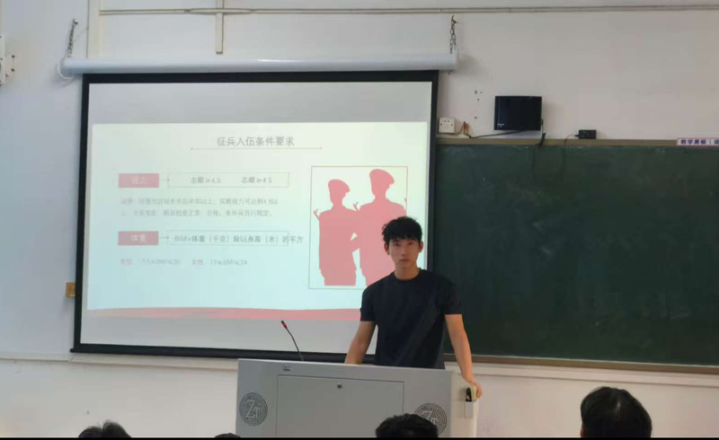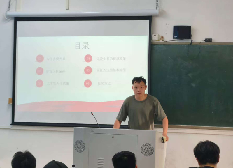 本次征兵系列宣讲会邀请了5名退役复学大学生为宣讲员,会上,学校退役学生分享了自己的入伍初心以及在军营中成长、成熟的点滴历程。分享了在部队的所见所闻、所思所感、所获所得,鼓励同学们将征兵入伍作为一个提升自我的桥梁,将个人理想与富国强军相结合,把个人成长融入强国梦、强军梦的伟大实践中。