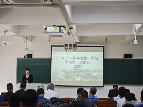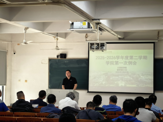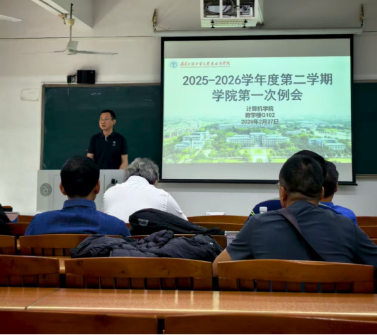 2月27日上午,计算机学院在G102召开2025-2026年度第二学期新学期全体教职工大会,并宣读新领导班子任命。会议上曾用强副校长出席会议并发表讲话。计算机学院全体教师出席会议。会议由朱子江院长主持。