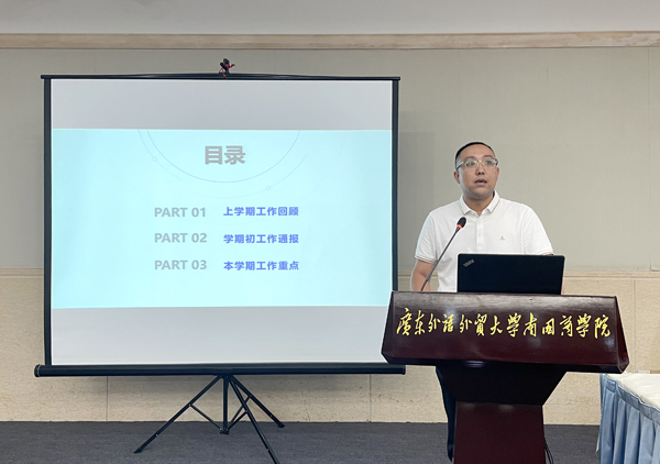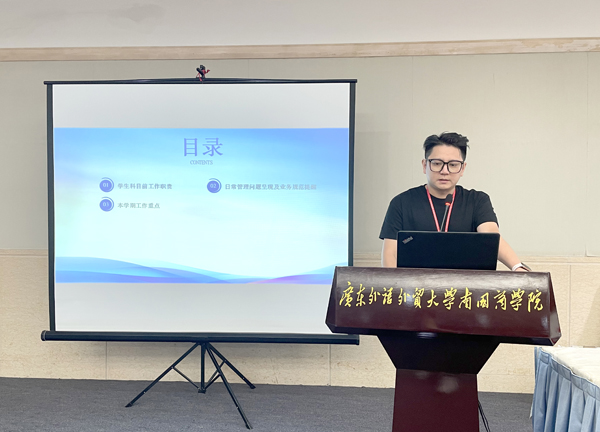 学生处学生资助中心主任余小玲、学生科副科长李惠良、思想政治教育科副科长陈国静、心理健康教育与咨询中心副主任梁晓闻、校团委副书记徐燕萍对2025年秋季学期学生资助工作、学生日常管理与突发事件应急处理、思想政治教育工作、学生心理健康教育工作、校团委等重点工作进行部署和说明。