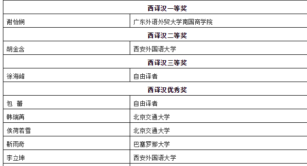 第三十七届韩素音国际翻译大赛西语学院获奖名单 | |||||