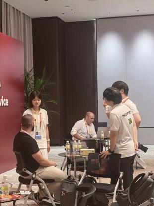 2022级葡萄牙语专业的胡楚燕早在9月就与巴西采购商开展了跨区域商务访问,行程从北京延伸至深圳,覆盖了北京、上海、深圳、济南等9座城市。在这期间,她精准地完成了医疗设备、充电桩、LED屏幕等领域企业及工厂的参访翻译工作,清晰无误地传递技术参数与合作诉求,助力客户与中方企业实现高效对接,推动多笔潜在合作达成初步意向。在第92届医博会上,她凭借丰富的专业术语储备和灵活的跨文化沟通技巧,确保了展会交流的顺畅进行,为双方搭建起稳定的信息传递通道。