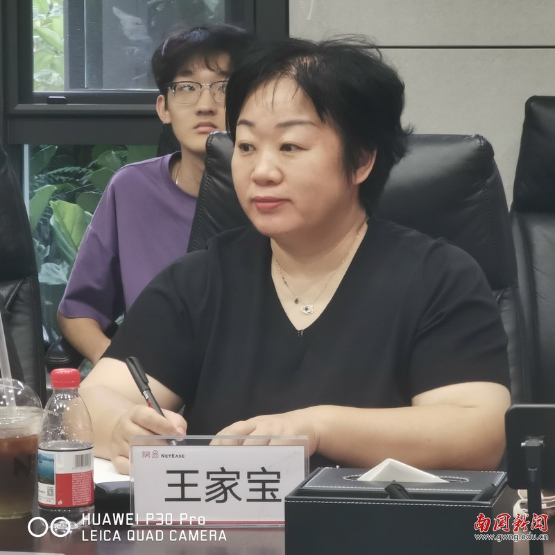 在交流环节中,高彩云代表到访师生诚挚感谢了两位负责人带来的这场聚焦技术前沿领域的通识教育课程,大家都从中深受启发。她结合两期学员的培养情况以及多语种新媒体产业学院的发展现状,分享了自己的观察与思考。她指出,近年来,受人工智能等技术的冲击,语言类专业的招生和就业确实面临着挑战。今天一行,让“语言专业学生的出路在何方”这一问题有了非常具象化的答案。她表示:“此次参访让我们更加坚定了努力的方向。李总和王总的分享,印证了我们的判断——唯有打破学科壁垒,推动多学科的交叉融合,才能为学生开辟更广阔的发展天地。无论是介绍中提到的直播助理,还是KOL运营、管理和内容创作,都是语言类专业很好的就业方向,都能够通过与网易的深度融合,实现人才培养与产业需求的精准对接。有机会引入网易这样的知名企业入校,共同构建课程体系,一定能实现人才培养与产业需求的同频共振,打造优质的教育生态链。”