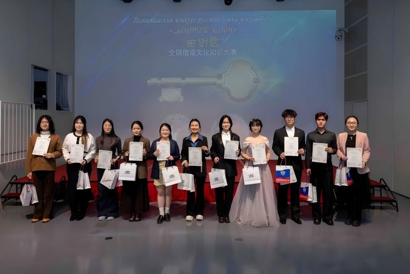 2025年12月12日,第二届“金钥匙”全国俄语语言文化知识大赛在北京俄罗斯文化中心隆重举办。我校俄语系2024级1班陈冠尔同学凭借扎实的专业功底成功入围青年组决赛,收获全国总决赛优秀奖,指导教师闫秋菊及俄语外教Д.В. Аверьянова获指导教师奖。