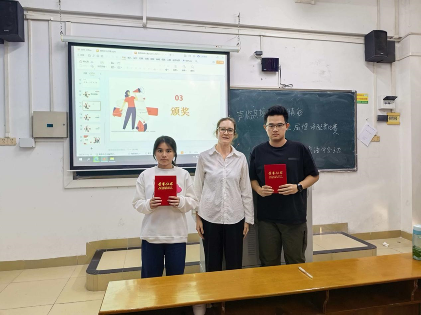 本次比赛特邀外教Katja、刘燕妮老师、戴磊磊老师担任评委。评委们从语音语调、情感表达、配音技巧等多个维度对选手进行专业评审与打分。
