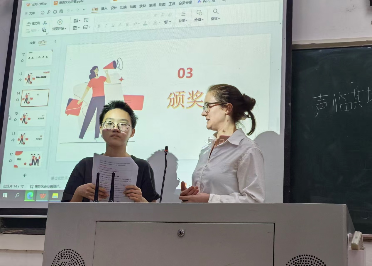 比赛结束后,德语外教Katja和刘燕妮老师分别用德语对选手们的表现进行了点评,25级胡静皓和单小珂分别担任德语翻译。评委老师们充分肯定了参赛选手的精心准备与出色表现,并指出,配音不仅是语言模仿,更是对文化内涵与角色心理的深度理解和再创造,是一次极具价值的语言实践。希望选手们在未来有更多精彩的表现。