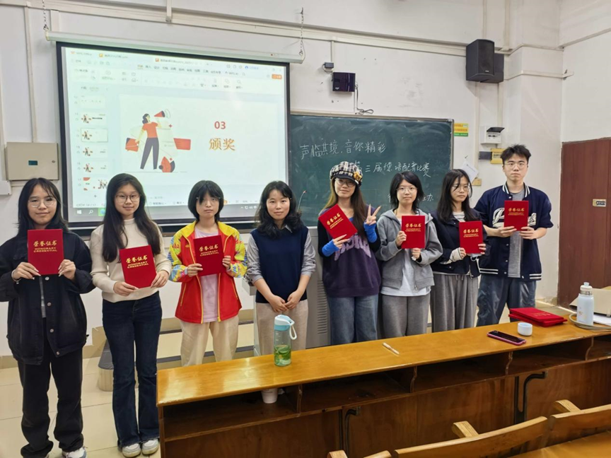 经过激烈角逐,最终评选出个人及团体一、二、三等奖以及多个优秀奖,另外还在比赛前通过网络投票的方式选出了两名“最佳人气奖”。一等奖获得者为25级胡静皓。二等奖获得者为25级邹王宜、樊欣铭团队和25级陈秋雅、郭文昕。三等奖获得者为25级单小珂、24级施悦昕、25德语龚文欣。此外还有多名同学荣获优秀奖。最后,最佳人气奖获得者为23级黄灏超、25级单小珂。他们凭借扎实的德语功底、富于感染力的声音表现和精巧的编排设计,为经典影视片段注入了新的活力。无论是动画角色的俏皮可爱,还是电影对白的深沉张力,抑或戏剧独白的饱满情感,均被同学们演绎得惟妙惟肖,引发现场阵阵掌声与欢笑,充分展现了德语系学子卓越的语言掌握度和丰富的创造力。