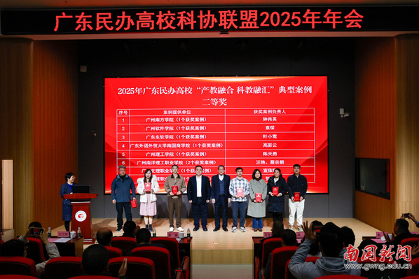 本网讯 2025年12月27日,广东民办高校科协联盟2025年年会在广州南洋理工职业学院召开。本次会议由广东省科学技术协会等单位指导,广东民办高校科协联盟主办,广州南洋理工职业学院承办。我校作为获奖单位受邀参会,西语学院党总支书记高彩云作为代表出席会议并领取了奖项。