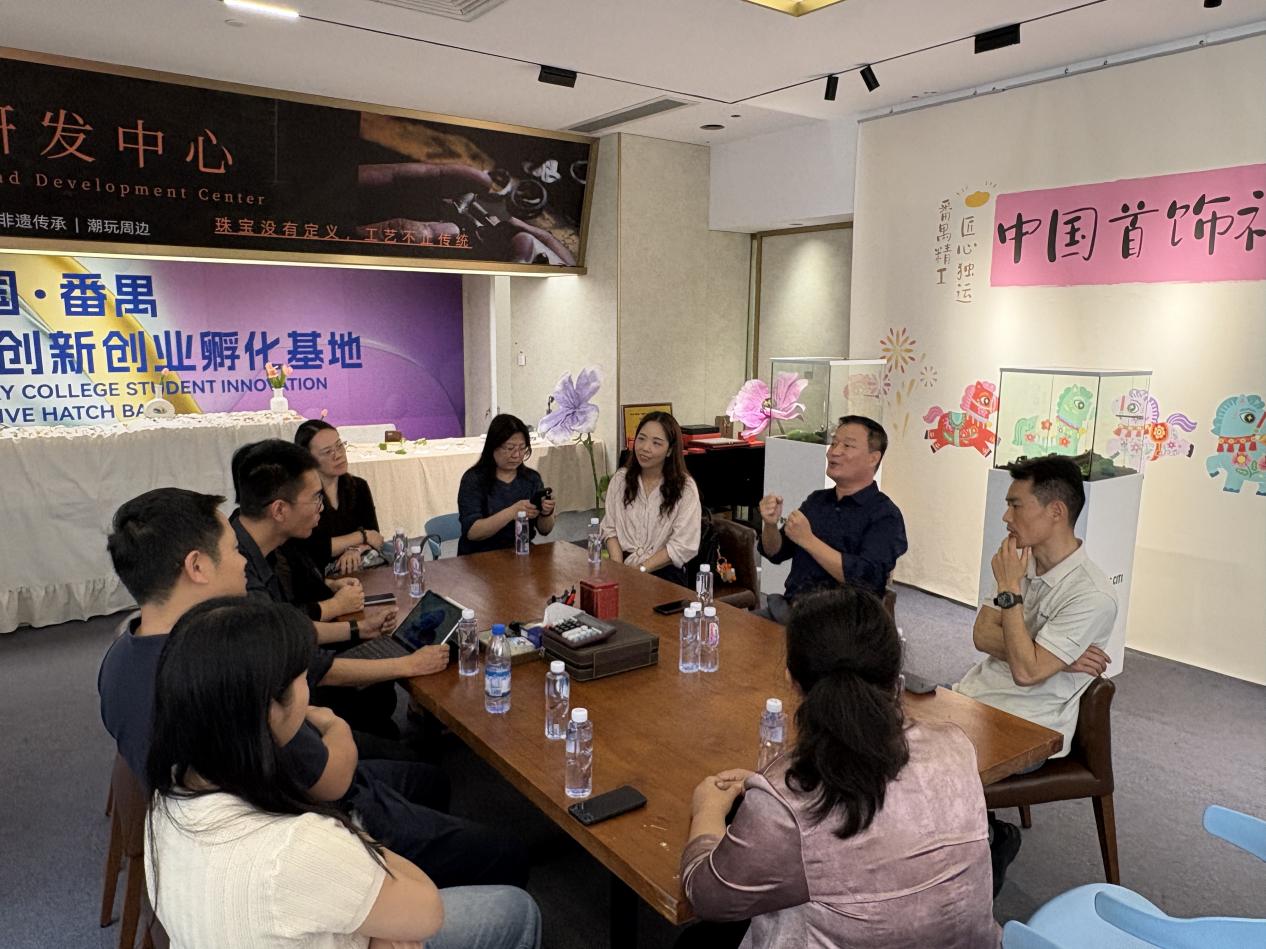 为深入了解粤港澳大湾区时尚产业发展态势,精准对接行业人才需求,深化政行校企产教融合与专业共建,3月26日,我校教务处副处长罗惠铭、学生处副处长高彩云、英文学院副院长王家宝、东语学院党总支书记谢丹平、西语学院副院长余珊、西语学院党总支书记助理曾海滢等五个部门代表组成的调研团队,赴广州市番禺区开展时尚产业专项调研走访,与番禺区珠宝产业发展联合会及当地龙头企业展开深度交流,共谋产教融合育人新模式,共商校企协同育才新方案。