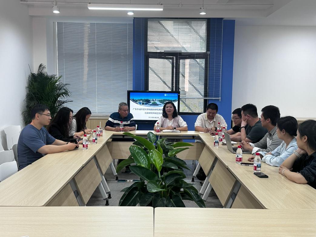 近日,广东外语外贸大学南国商学院西方语言文化学院拉美研究所成立仪式在多语种大楼H303举行。西方语言文化学院院长于凤颖,副院长唐彤、余珊,拉美研究所顾问朱学文,西班牙语系系主任杨帆、葡萄牙语系副主任罗文颖及部分西班牙语教师出席了本次仪式。
