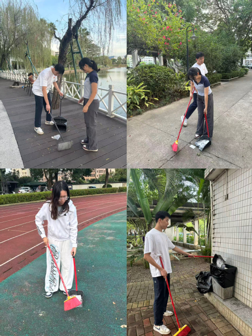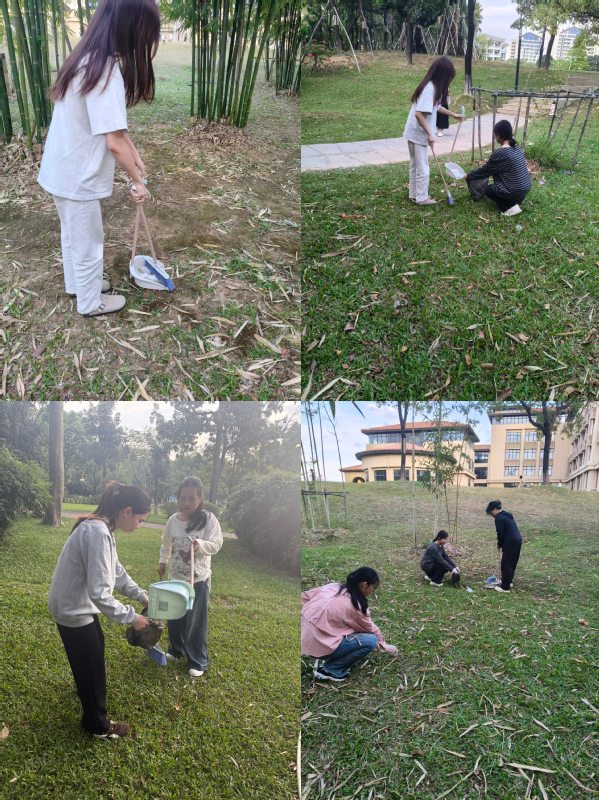 活动开展前,两组学员在党支部的统一部署下,提前规划、合理分工,明确了垃圾打扫清理的具体任务。活动过程中,大家发扬不怕脏、不怕累的精神,认真细致地清理草丛、路面等区域的纸屑、塑料瓶等杂物。学员们相互配合、高效协作,忙碌的身影构成了一道亮丽的校园风景线,以点滴行动切实改善了校园环境。