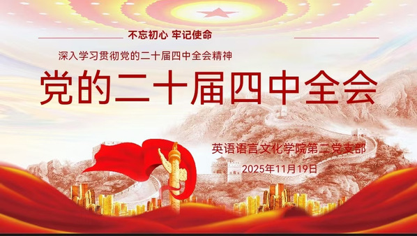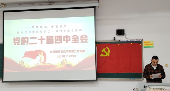 为深入学习贯彻党的二十届四中全会精神,切实把全体党员的思想和行动统一到党中央决策部署上来,英语语言文化学院第二党支部于2025年11月19日下午在G101召开党员大会,围绕党的二十届四中全会精神开展专题学习,推动全会精神落地生根、走深走实。