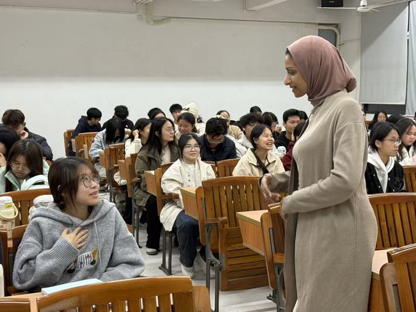 本网讯 11月20日晚19:00至20:20英文学院学生会学生部在F303举办了主题为“Environment”的第四期英语角活动。外教老师Aqsa和Jean以及25级商务英语1班、商务英语2班、商务英语3班和翻译1班的全体同学参与了本次活动。