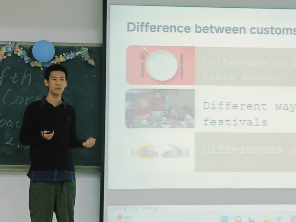 在自由讨论环节,外教Kyle与同学们围绕主持人抛出的三个问题,开启了一场思想的交锋。大家各抒己见,思维的火花在交流中不断迸发——师生们聚焦“中西方文化差异有哪些”,“文化差异的根源是什么”,“如何应对日常中的文化差异”三个话题深入探讨:有人细数“社交礼仪里‘含蓄’与‘直接’的碰撞”,有人剖析“文化差异背后的历史与环境脉络”,更有同学结合生活实例,提出“以尊重为底色、以沟通为纽带”的应对思路。这场讨论让抽象的文化差异,化作了可触摸的生活细节;也让大家在交流里,学会了用更包容的目光拥抱多元世界。