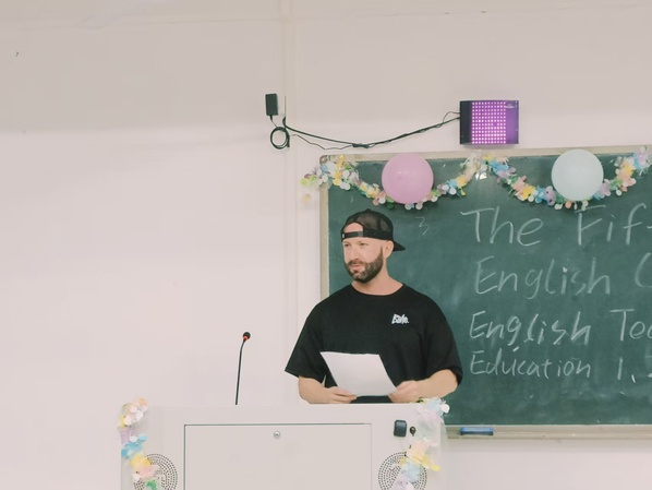 在指导老师的点评环节中,老师对主持人与演讲者的表现给予充分的肯定:英语发音准确规范,演讲过程流畅自然,展现出了良好的语言表达功底。同时老师也指出了细节优化方向,包括需打磨部分单词的发音细节、适当增加肢体语言以增强互动感,以及进一步规范麦克风的使用方式。对于配音者,老师同样认可其英语发音的精准度与配音的流利度,认为配音者较好地还原了作品的情绪节奏;同时建议配音时适当提高音量或调整麦克风距离,增加与观众的眼神交流,确保全场观众能够清晰聆听,进一步强化配音的感染力与现场效果。