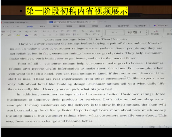 为促进交流共进,教研室已将部分优秀作品(含初稿、二稿、AI反馈点评报告及内省视频节选)上传至百度网盘,供同学们参考学习。
