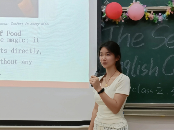 在演讲过程中,三位演讲者曾妤欣、马紫薇、石益玮三位同学紧扣本期Food, Drink and Cuisine主题,从食物的意义、饮品与生活、美食与文化等角度,分享了饮食带来的能量与快乐、各地特色风味与多元饮食文化。他们用真实的体验与生动的表达,带领大家感受美食背后的情感联结与文化魅力,鼓励大家用心品味生活、勇敢探索世界,在舌尖与行走中收获成长。