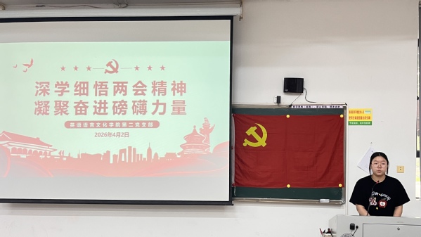 为深入学习贯彻2026年全国两会精神,引导广大青年学生精准把握国家发展脉搏,将个人理想融入国家发展大局,英文学院第二党支部于4月2日精心组织召开全国两会精神专题学习会,全体党员同志齐聚一堂,共学共悟两会精神。