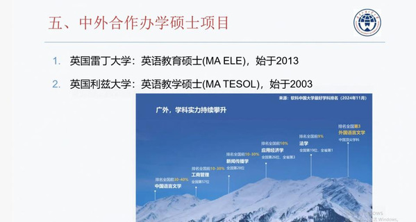 宣讲会重点解析了两条升学路径。统招硕士方面,涵盖英语语言文学、外国语言学及应用语言学等四大方向。李成团特别指出,外语教学与技术评估方向因信息不对称导致报考人数较少,但该方向师资雄厚、科研资源丰富,希望我院学子予以关注。中外合作办学项目方面,郑常青详细介绍了与英国雷丁大学合办的MAELE项目。该项目最大的特点是“不出国门拿留服认证学位”,采用广外与雷丁教师联合授课(Co-teaching)模式,全英文教学,所获学位可获教育部留学服务中心认证。