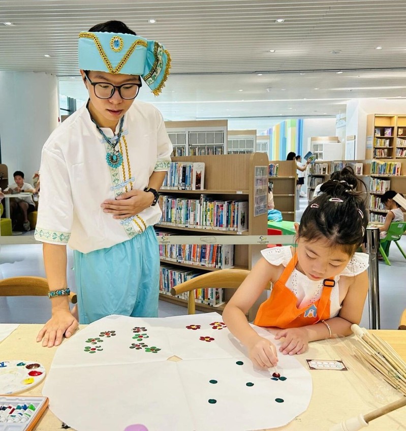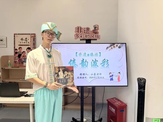 8月24日,白云图书馆与我校教育学院联合举办的“非遗·傣族”文化体验公益活动,于白云图书馆负一楼影像体验馆顺利落幕。此次活动由我院24级小学教育专业的何嘉恒同学担任主讲教师,他以沉浸式讲解与趣味实践相结合的形式,带领小朋友们走进傣族文化世界感受非遗多民族文化的魅力。