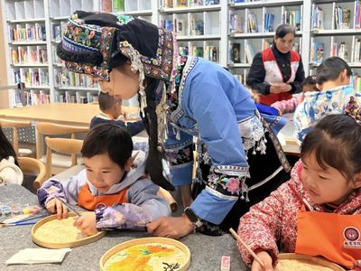 2026年1月10日,我校教育学院与白云区图书馆携手举办“非遗·布依族”绘本讲读与簸箕画制作公益活动,于白云图书馆负一楼少儿阅览区圆满落幕。本次活动由24级英语师范1班杨清霞担任主讲老师,学前教育专升本3班孙烜瑜担任助教,旨在向孩子们传递布依族非遗文化魅力,培养其对传统文化的兴趣与热爱。