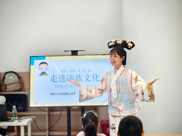 1. 服饰关:老师详解满族男女传统服饰特色,男生的马褂、瓜皮帽,女生的长袍、花盆底鞋、各式旗头,还有象征吉祥的云纹刺绣,孩子们还分组朗诵服饰儿歌,用朗朗童声记住满族服饰的独特韵味;
