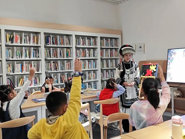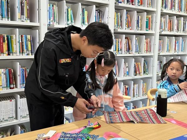 2025年4月4日,白云图书馆与我校教育学院联合举办的“非遗·彝族”绘本讲读与三角包制作公益活动,于白云图书馆负一楼少儿阅览区圆满落幕。此次活动由我院22级学前教育专业李子同学担任主讲教师,她用生动的叙述和多样的互动方式,引领小朋友们探索彝族非遗文化的独特魅力。同时,23级小学教育2班的姚曼琳同学和24级小学教育2班的何嘉恒同学担任助教。教育学院学前教育系主任王晟老师、教育学院曹谨老师也莅临现场,共同见证了这场意义非凡的公益教育活动。